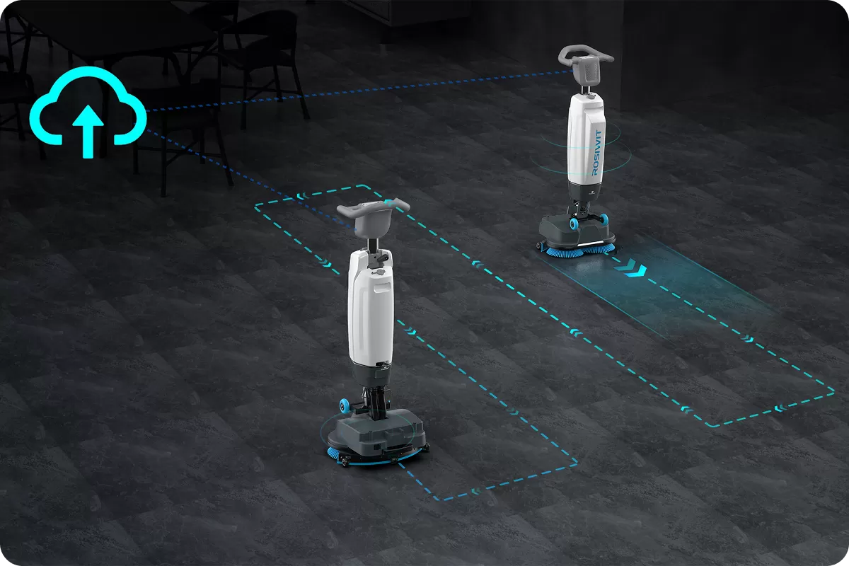Self-standing structure: manual floor scrubber can stand independently during pauses or battery replacement